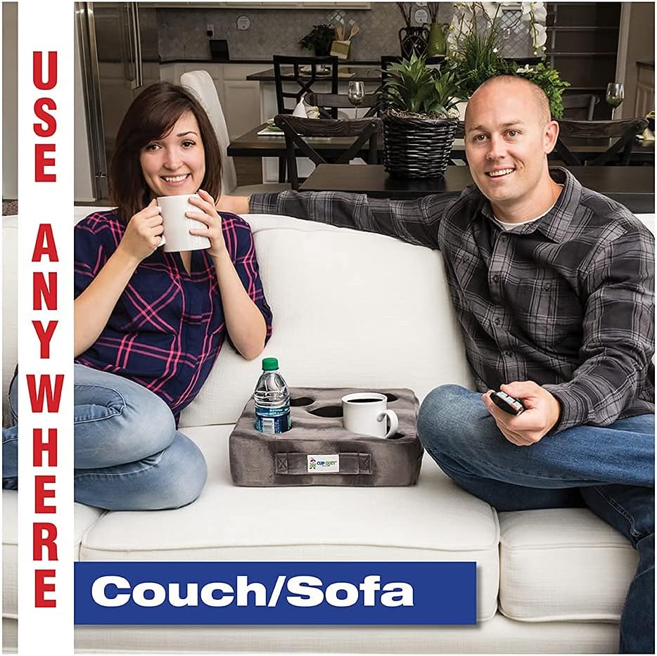 Are you tired of spilling your drink? Is your coffee table MIA or simply too far away? Problem solved with the Cup Cozy Pillow-the world's best cup holder!