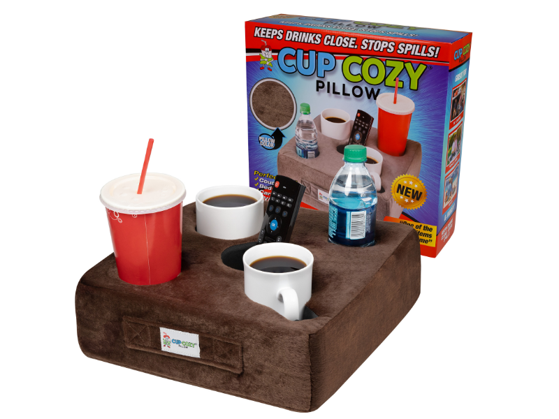 <p class="MsoNormal">The Cup Cozy Pillow is the ultimate cup/snack holder, designed to keep your drinks close to you and safe from spills. The secret is the foam inside that stretches to fits almost any size/style of cup/mug. The foam also naturally insulates to keep your drinks hot or cold longer. </p>