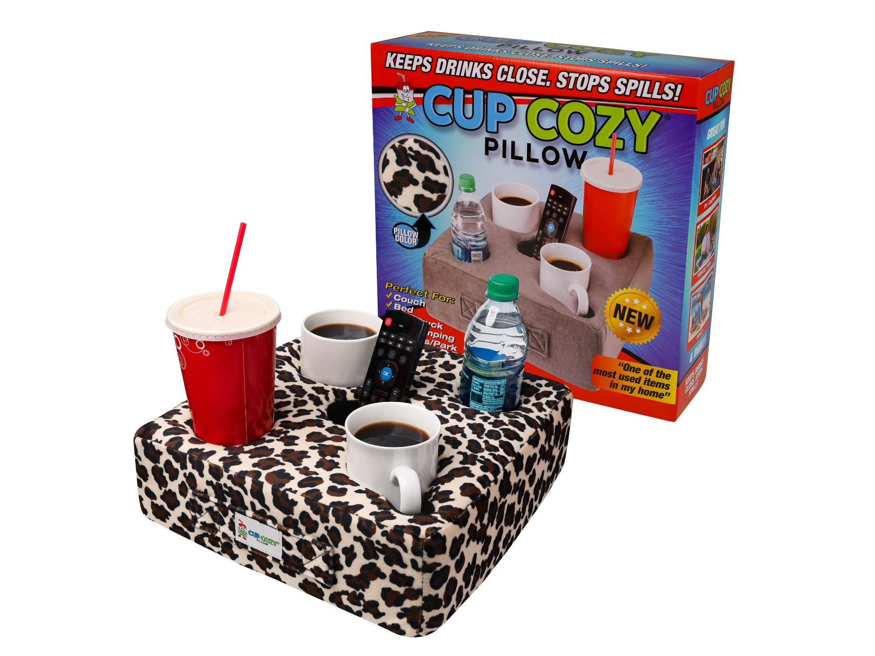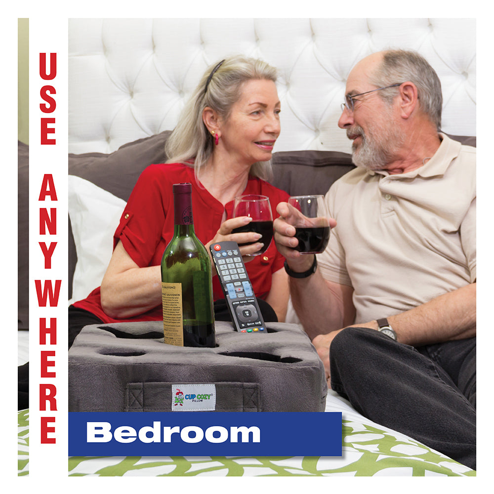 The easy to clean removable and washable covers make cleaning a snap. It's where your drinks want to go! It's the Cup Cozy Pillow!
