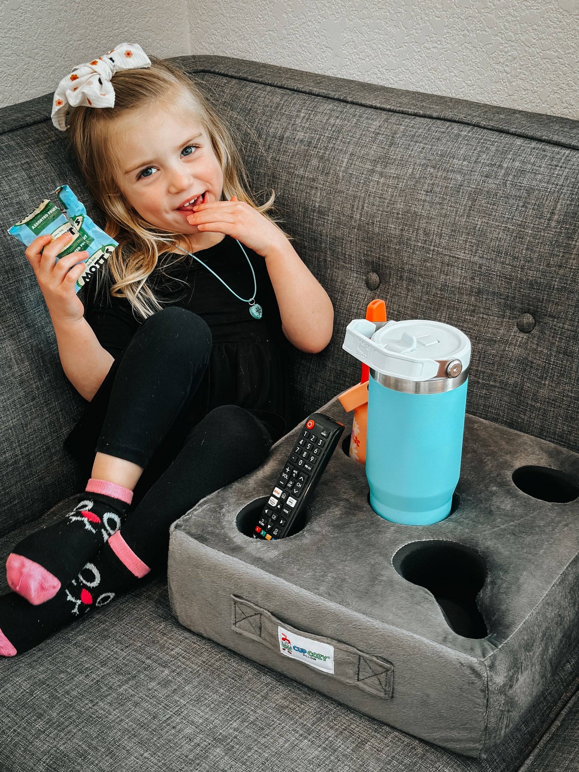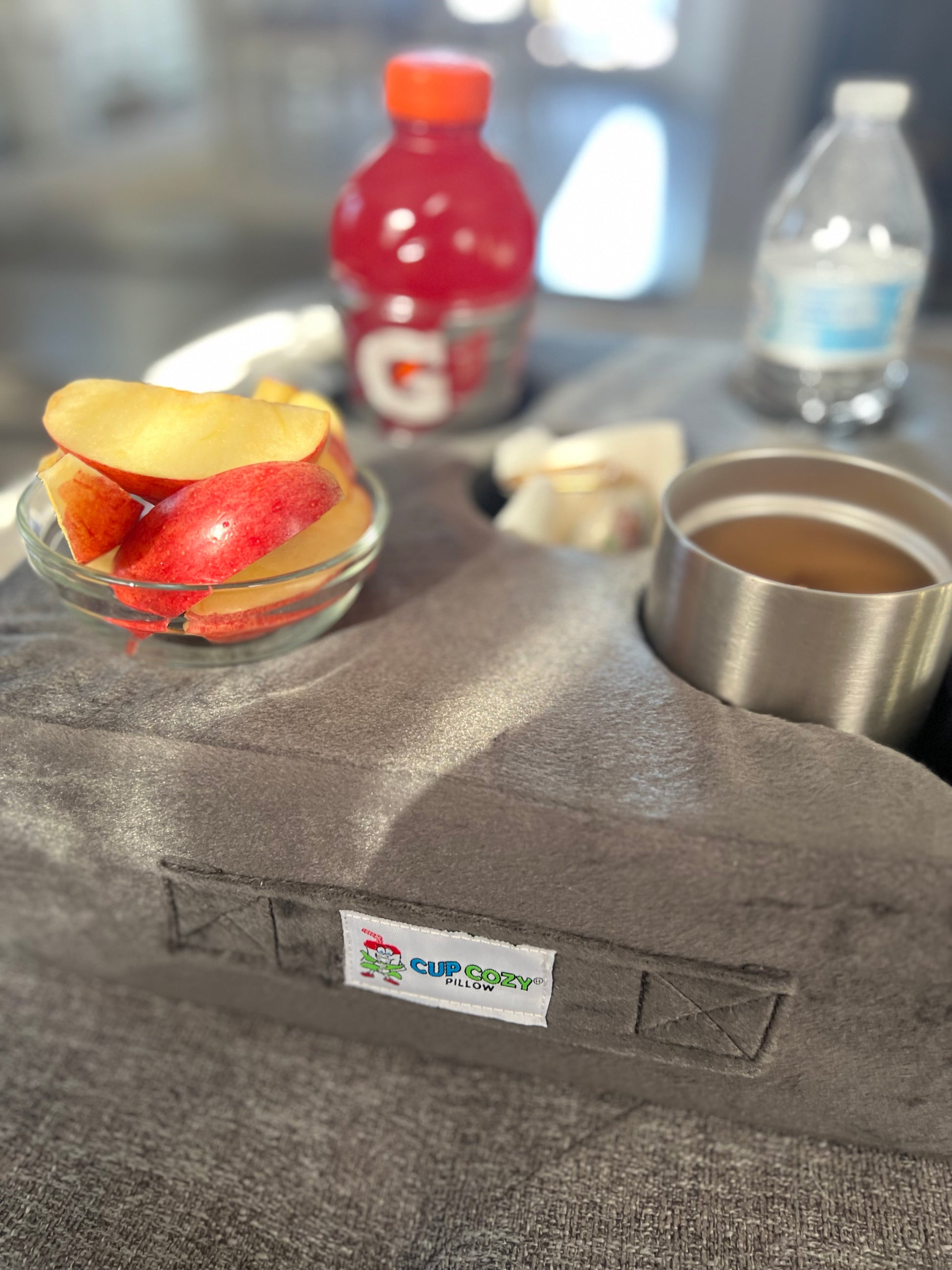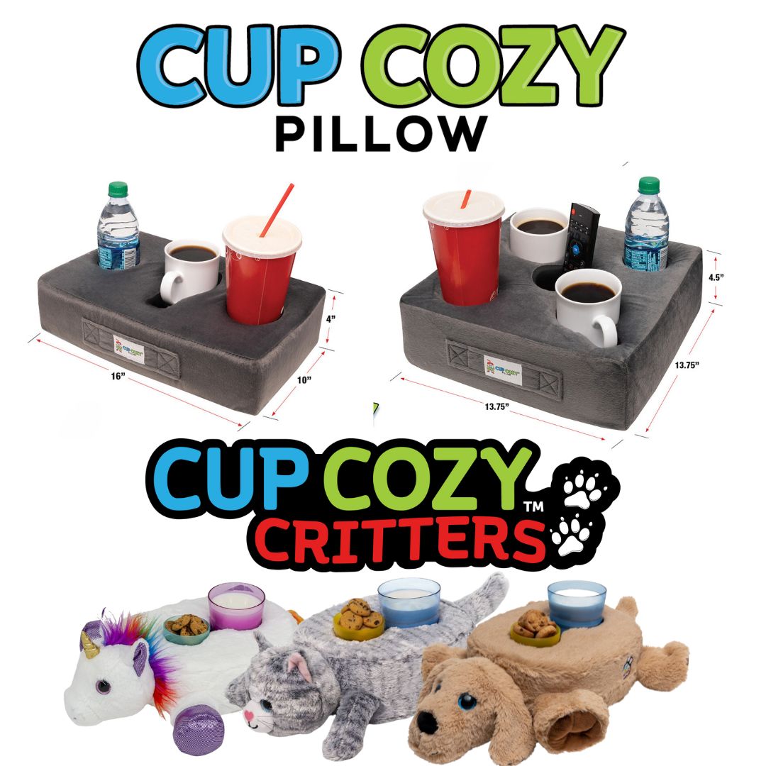 The Cup Cozy Pillow is the ultimate cup/snack holder, designed to keep your drinks close to you and safe from spills. The secret is the foam inside that stretches to fits almost any size/style of cup/mug. The foam also naturally insulates to keep your drinks hot or cold longer.